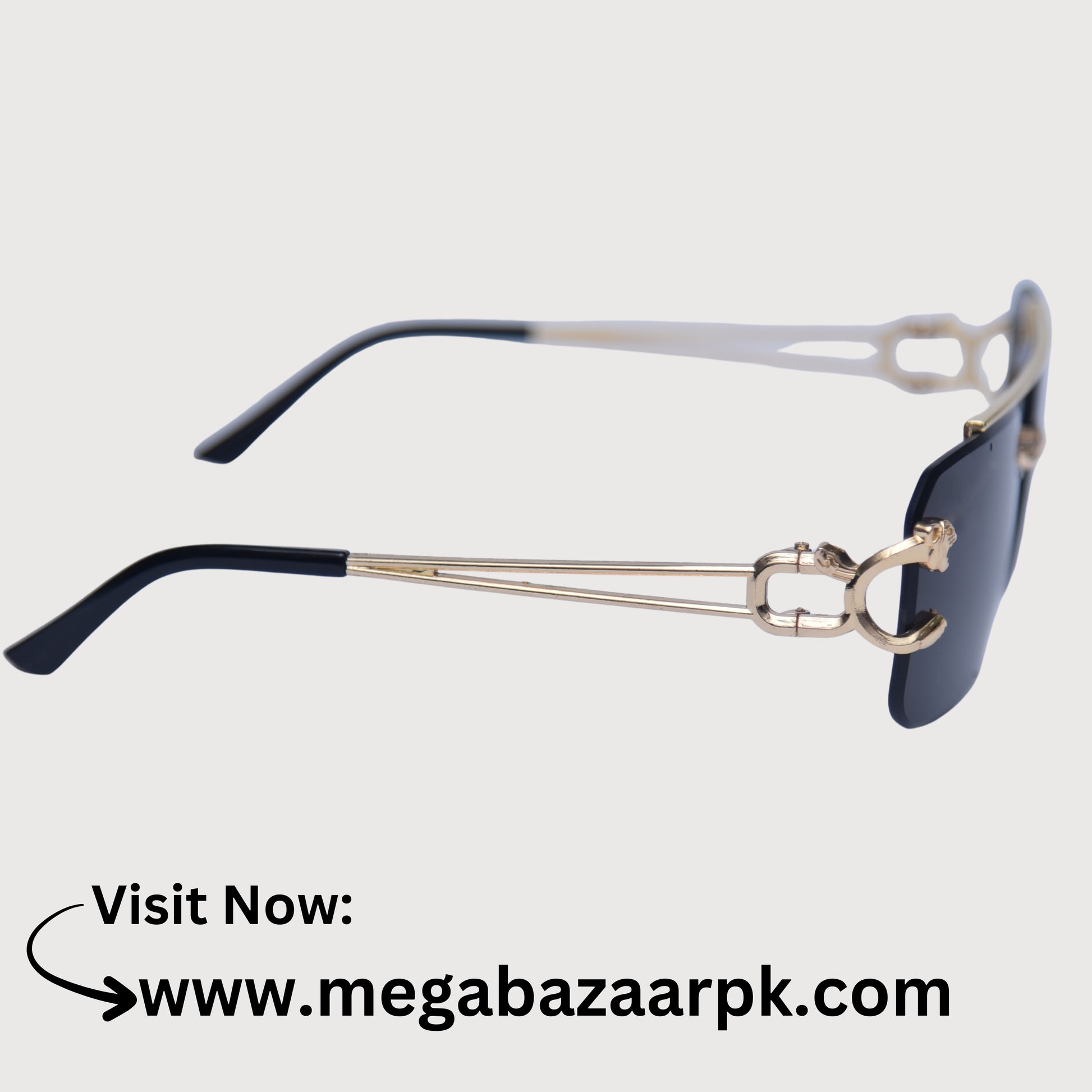 Luxury Rimless Rectangular Panther-Emblem Sunglasses